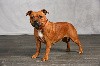 Chienne rouge de 3 ans - Bon forme de tête - Bonnes oreilles en forme de roses - Petits yeux clairs - Stop ok - Muscles forts - Dent correcte - Encolure forte - Ok ligne du dessus - Ok angulations des pieds AR - Coudes tournés vers l'extérieur et resserrés - OK os solides - Bonne port de queue - Ok courbe du dos - Mouvement serré à l'AR - Préfèrerai un tempérament plus fort
